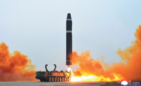 The Hwasongpho-15, fired on a lofted angle, was launched at Pyongyang International Airport and accurately hit a preset area in the eastern open waters on Saturday afternoon. The launch was conducted under an emergency firepower combat standby order given at dawn on Saturday and a written order from Kim Jongun, chairman of the Central Military Commission of the Workers' Party of Korea, the report said.