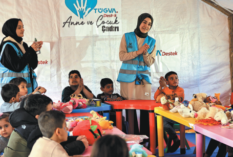 Ahmad Wannous, a displaced man, fled his home following the earthquakes and took refuge in the park. His son, wife and an extended family of 10 live in one tent.