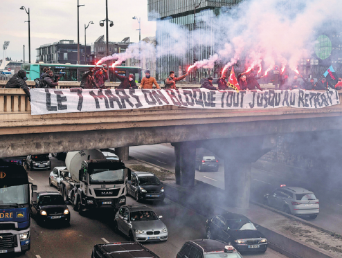 French citizens back strikes over the issue, with a poll by Elabe survey group showing 56 percent support for rolling strikes and 59 percent backing the call "to bring the country to a standstill".
