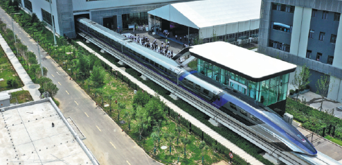 After CRRC Qingdao Sifang Co Ltd, a Shandong province-based subsidiary of CRRC, rolled out a high-speed maglev train with a designed top speed of 600 km/h in 2021, the construction of commercial maglev lines for this type of trains should also be considered and promoted by the government domestically, said Sun, who is also a member of the 14th National Committee of the Chinese People's Political Consultative Conference.
