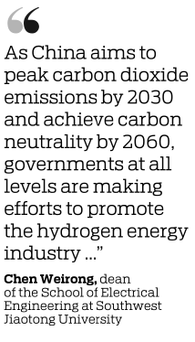 "As China aims to peak carbon dioxide emissions by 2030 and achieve carbon neutrality by 2060, governments at all levels are making efforts to promote the hydrogen energy industry, laying out specific hydrogen development plans to drive the industry," Chen said during a recent forum.