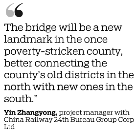 "The bridge will be a new landmark in the once poverty-stricken county, better connecting the county's old districts in the north with new ones in the south," said Yin Zhangyong, project manager with CR24.