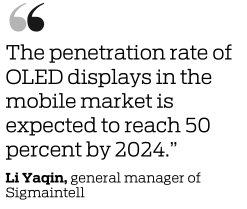 "The penetration rate of OLED displays in the mobile market is expected to reach 50 percent by 2024," Li said, adding that flexible OLED panels will likely gain popularity in mid-range smartphones which will be priced for at least 2,500 yuan ($361.6) by 2025.