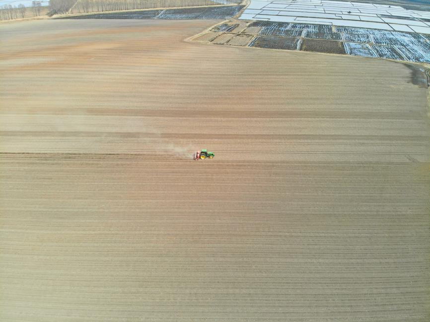 Farmers sow soybeans with the help of agricultural machines at the No 290 Company of Beidahuang Agricultural Reclamation Group, a State-owned enterprise in Heilongjiang province. [Photo by Xu Lei/For chinadaily.com.cn]