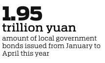 Data from Wind, a financial information service provider in China, showed that from January to April this year, local governments issued bonds worth 1.95 trillion yuan ($280 billion), including special local government bonds worth 1.62 trillion yuan, accounting for nearly 43 percent of this year's total special bond quota, notably faster than the January-April period of last year.
