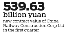 Against such backdrop, China's major transportation infrastructure developers China Railway Group Ltd (CREC) and China Railway Construction Corp Ltd (CRCC) — both listed on the Shanghai Stock Exchange — reported double-digit growth in new orders and order value in the first three months of this year.