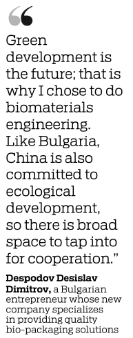 "Green development is the future; that is why I chose to do biomaterials engineering. Like Bulgaria, China is also committed to ecological development, so there is broad space to tap into for cooperation," said Dimitrov.