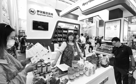 In a 60-square-meter booth, a foreign trade company displayed commodities including honey, fruit juice and fruit cans produced in Russia, which attracted quite a few visitors.