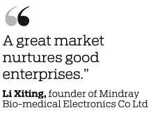 "A great market nurtures good enterprises," Mindray's founder Li Xiting said, attributing the company's success to the solid innovation-based research and development of products and services to meet the ever-changing market demand.