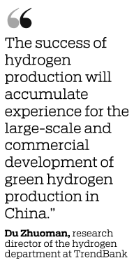 "The success of hydrogen production will accumulate experience for the large-scale and commercial development of green hydrogen production in China," said Du Zhuoman, research director of the hydrogen department at TrendBank, an emerging industry research and consulting company.