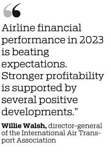"Airline financial performance in 2023 is beating expectations. Stronger profitability is supported by several positive developments. China lifted COVID-19 restrictions earlier in the year than anticipated," said Willie Walsh, IATA's director-general.