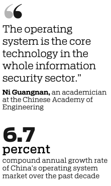 "The operating system is the core technology in the whole information security sector," said Ni Guangnan, an academician at the Chinese Academy of Engineering, adding that the country's operating system has made progress by leaps and bounds after years of development.