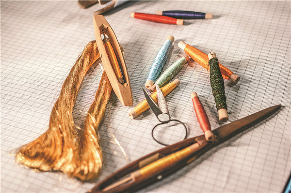 The production of yunjin uses refined raw material including silk and gold foiled threads. [Photo provided to China Daily]