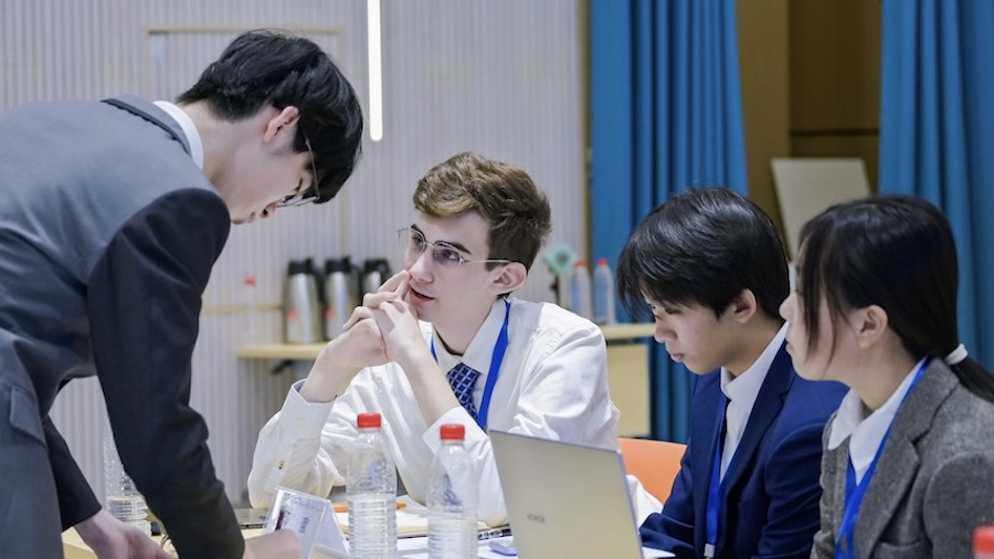 Students attend the youth exchange event at the China National Children's Center in Beijing on Dec 8, 2023. [Photo provided to chinadaily.com.cn]