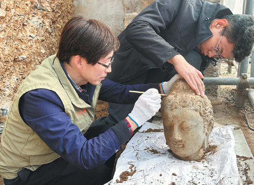 A well-preserved stone Buddha head, 38 centimeters in height and 22 centimeters in width, is among the stunning finds.