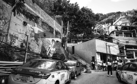 From atop the hillside slum that overlooks the trendy beach neighborhoods of Copacabana and Ipanema, they recreate the ambiance of the Maracana on match days, decorating an old pitch with flags, grilling barbecue and belting out chants as the match plays on a giant screen.