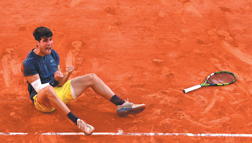The red-and-yellow Spanish flags that became such an annual fixture at Court Philippe Chatrier in the era of Nadal were there again Sunday, this time for Alcaraz. The difference? The cries of "Ra-fa! Ra-fa!" were now "Car-los! Car-los!"