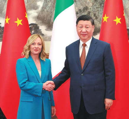 A sound and stable China-Italy relationship serves the common interests of both nations, President Xi Jinping told visiting Italian Prime Minister Giorgia Meloni on Monday, urging the two countries to stay committed to mutual opening-up and cooperation.