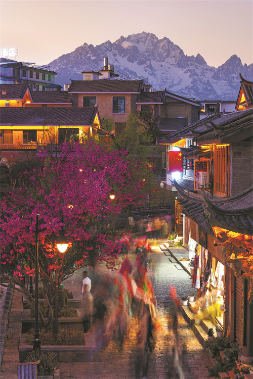 The town is lit up at night. [Photo by He Zhao/For China Daily]