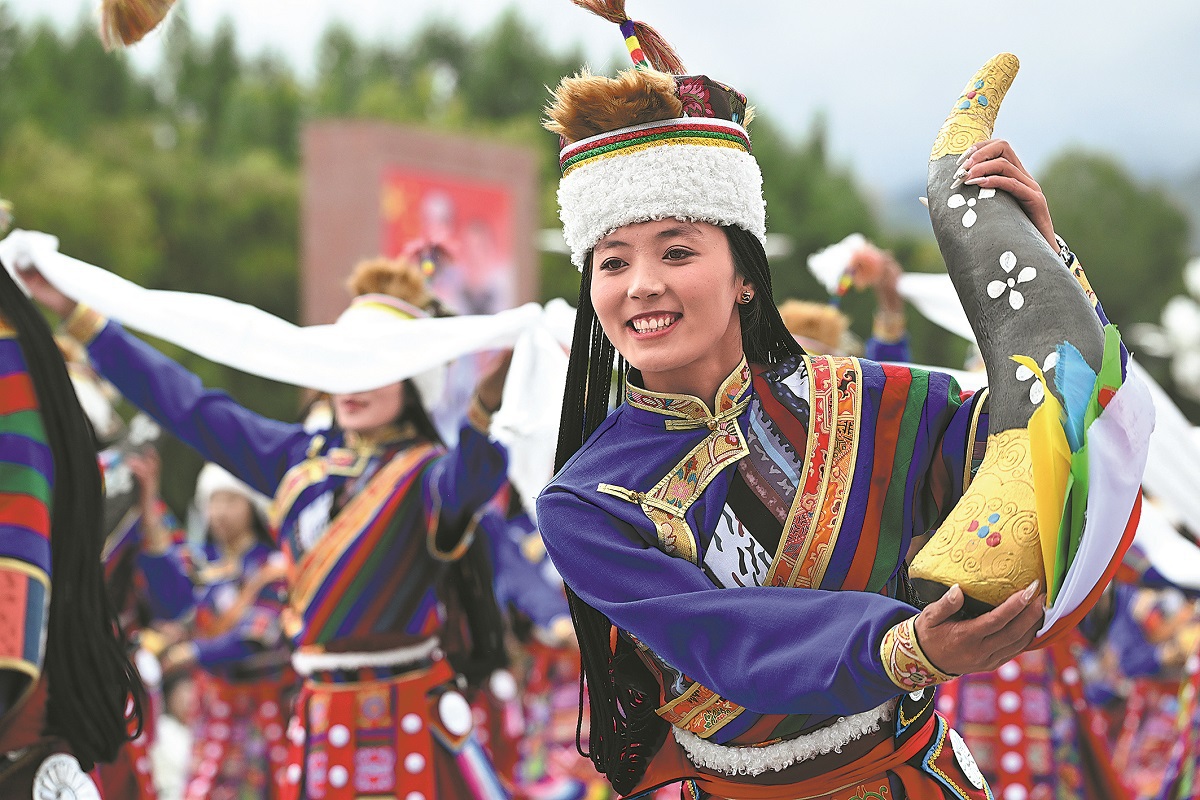 The ceremony concluded with a vibrant mass parade in an auspicious and festive atmosphere with music and dance. Twenty-six formations of floats, including seven representing Xizang's seven prefecture-level cities, and performers marched past in colorful costumes, expressing joy over their new lives and gratitude to the Party and the country. Xi and other leaders waved to the crowds.