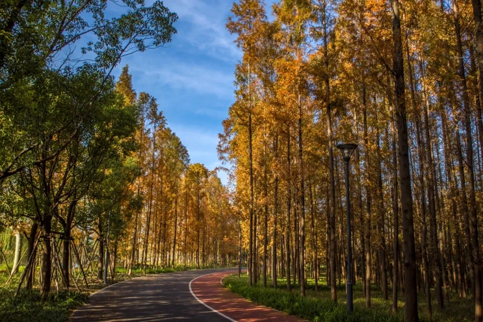 In some sections, ginkgo trees and other native plants lend a poetic calm. Even in the height of summer, cyclists can ride in the cool shade, while in the autumn, the fallen leaves turn the path into a "golden avenue".