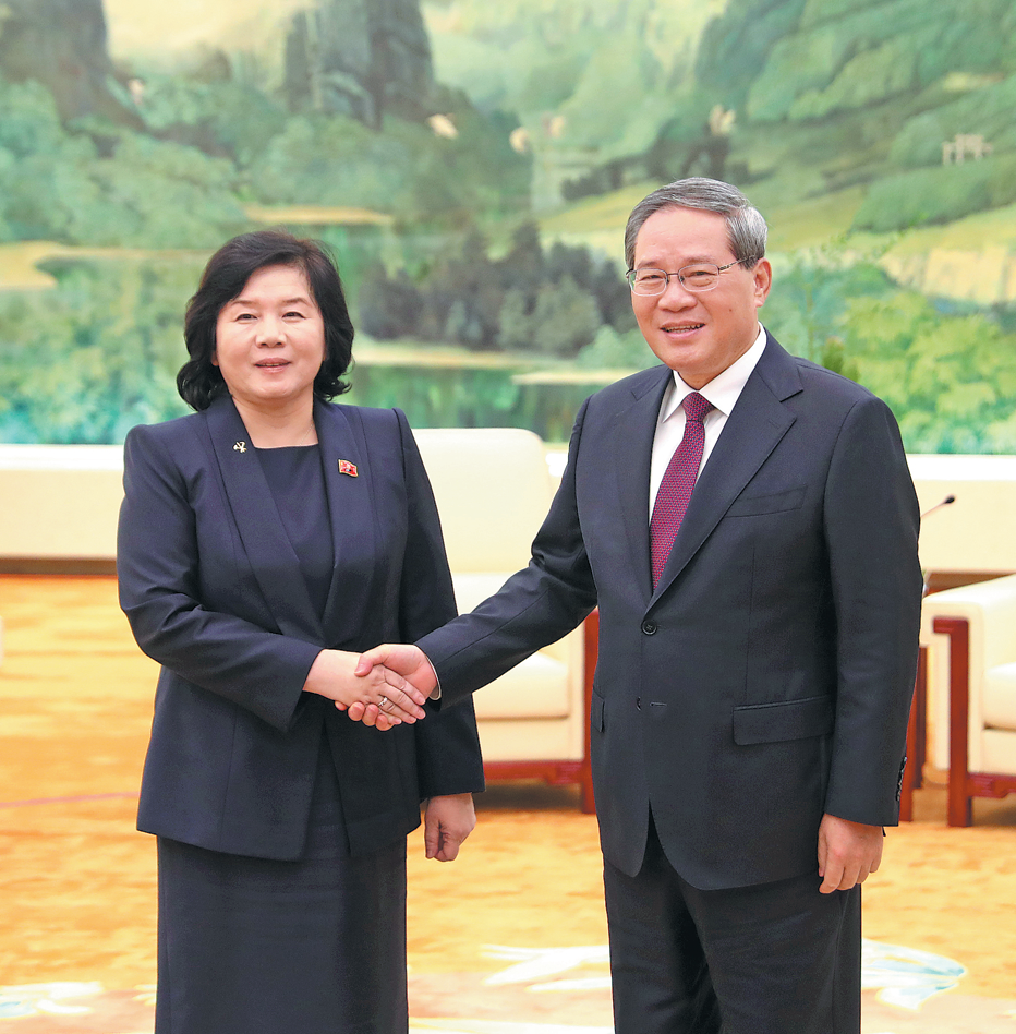 China and the Democratic People's Republic of Korea pledged to strengthen strategic communication, deepen practical cooperation and expand multilateral coordination to safeguard shared interests as Premier Li Qiang met with DPRK Foreign Minister Choe Son-hui in Beijing on Monday.