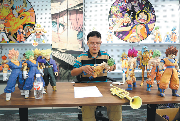 To turn a sketch into one of these figures requires more than 300 pieces of paper and at least 20 hours of work. The most elaborate designs take an entire week. Dozens of Pi's creations — from sci-fi automatons to anime characters — are now on display in the park's showroom.