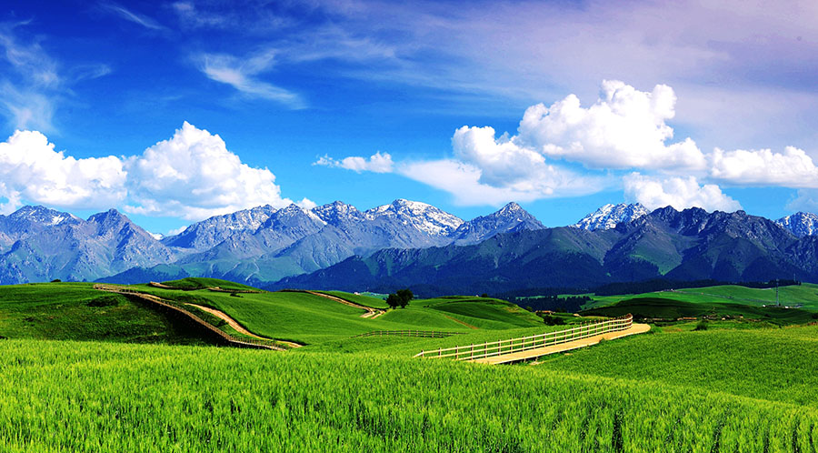Jiangbulake scenic area in eastern Tianshan Mountains, where snow peaks, pinewoods, wetlands, grasslands and alpine canyons converge to create rich tourism attractions. [Photo/Chinaculture.org]
