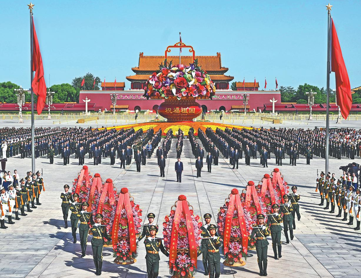 At around 10 am, Xi and other leaders — Li Qiang, Zhao Leji, Wang Huning, Cai Qi, Ding Xuexiang, Li Xi and Han Zheng — arrived at the square. They were joined by representatives from all walks of life.