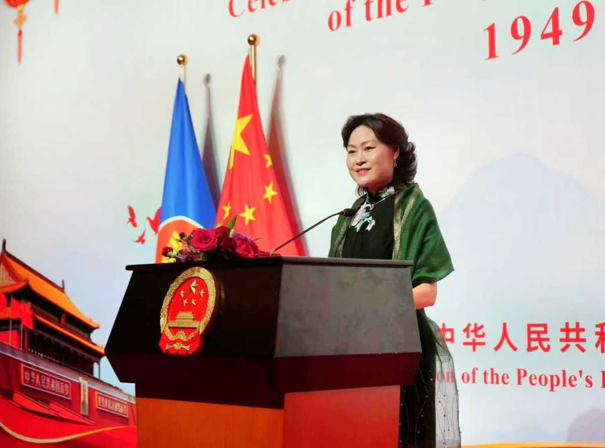 The reception was hosted by Hou Yanqi, China's ambassador to ASEAN, who called in her speech for cooperation in "upholding true multilateralism, supporting ASEAN unity and centrality, and working together to build a peaceful, safe and secure, prosperous, beautiful and amicable home, as well as a closer China-ASEAN community with a shared future".