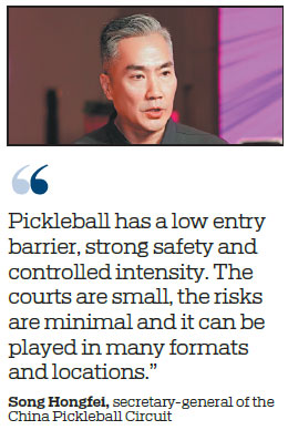 "Pickleball has a low entry barrier, strong safety and controlled intensity. The courts are small, the risks are minimal and it can be played in many formats and locations," Song said.