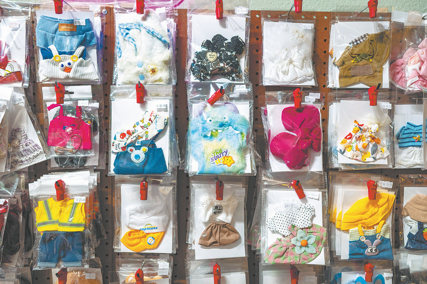 A wall is filled with Labubu outfits at a shop in California, the United States, in June. MARK RIGHTMIRE/GETTY IMAGES