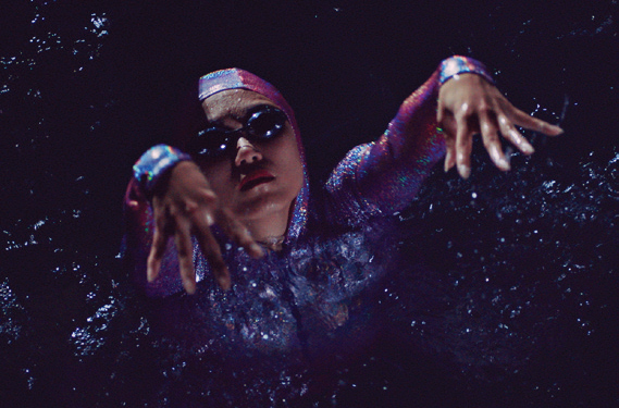 In her 2018 video piece Diver, Al Qadiri reimagines the pearl divers of the Persian Gulf — pearling was one of the mainstays of Gulf economy until the discovery of oil in present-day Iran in 1908 — as synchronized swimmers in dichroic body suits. They perform to a soundtrack that's a mix of contemporary music with a '60s recording of pearling boat sailors' songs in which the exertion of the rowers, and a prayer for a safe passage, are also discernible.