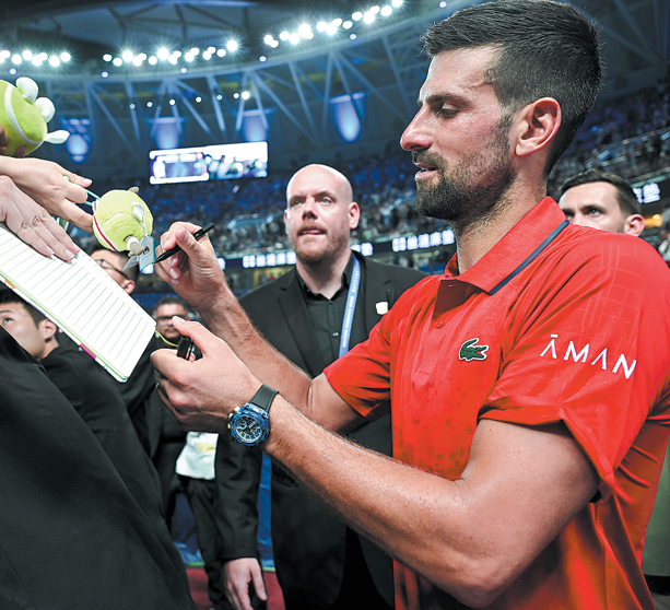 The Serbian great made it obvious at the ongoing Rolex Shanghai Masters that he's become better at presenting his post-match homework in the East China metropolis, as he barely missed a stroke while writing his name in Chinese on the lens of the TV camera following his latest win on Sunday.