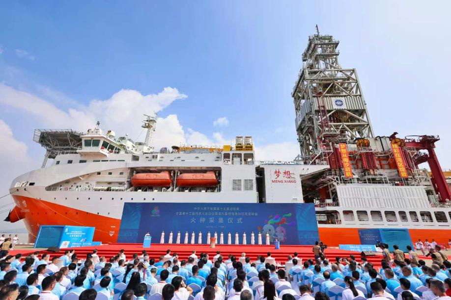 The torch-lighting ceremony for the 15th National Games, the 12th National Games for Persons with Disabilities, and the 9th National Special Olympic Games is hosted in Guangzhou's Nansha district on Thursday. [Photo by Parker Zheng/for chinadaily.com.cn]