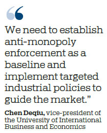 "To break free from this predicament, we need to establish anti-monopoly enforcement as a baseline and implement targeted industrial policies to guide the market away from low-price, cost-based competition toward value-driven competition."
