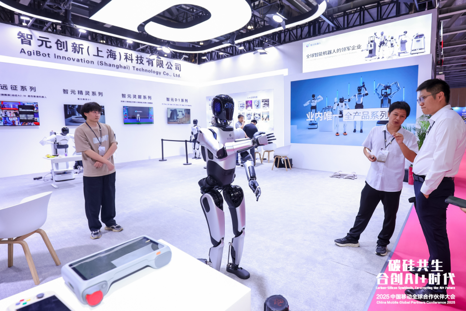 AgiBot, a key partner of China Mobile, is showcasing its progress toward scaled, industrialized, and commercialized robotics at the latter's ongoing annual global partners' conference in Guangzhou, Guangdong province. A2 is the company's first full-sized humanoid robot designed for scaled deployment, served as a receptionist and guide—capable of autonomous movement and fluent interaction powered by its self-developed large language model.