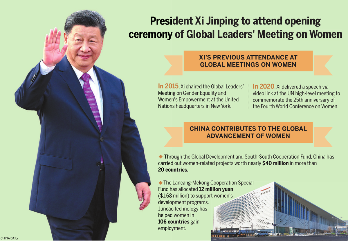 - Xi to attend Global Leaders' Meeting on Women, deliver keynote speech