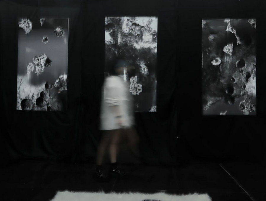 Research of moon soil, digital living and particles inspire artists' imaginations in a Tianjin exhibition. [Photo provided to chinadaily.com.cn]
