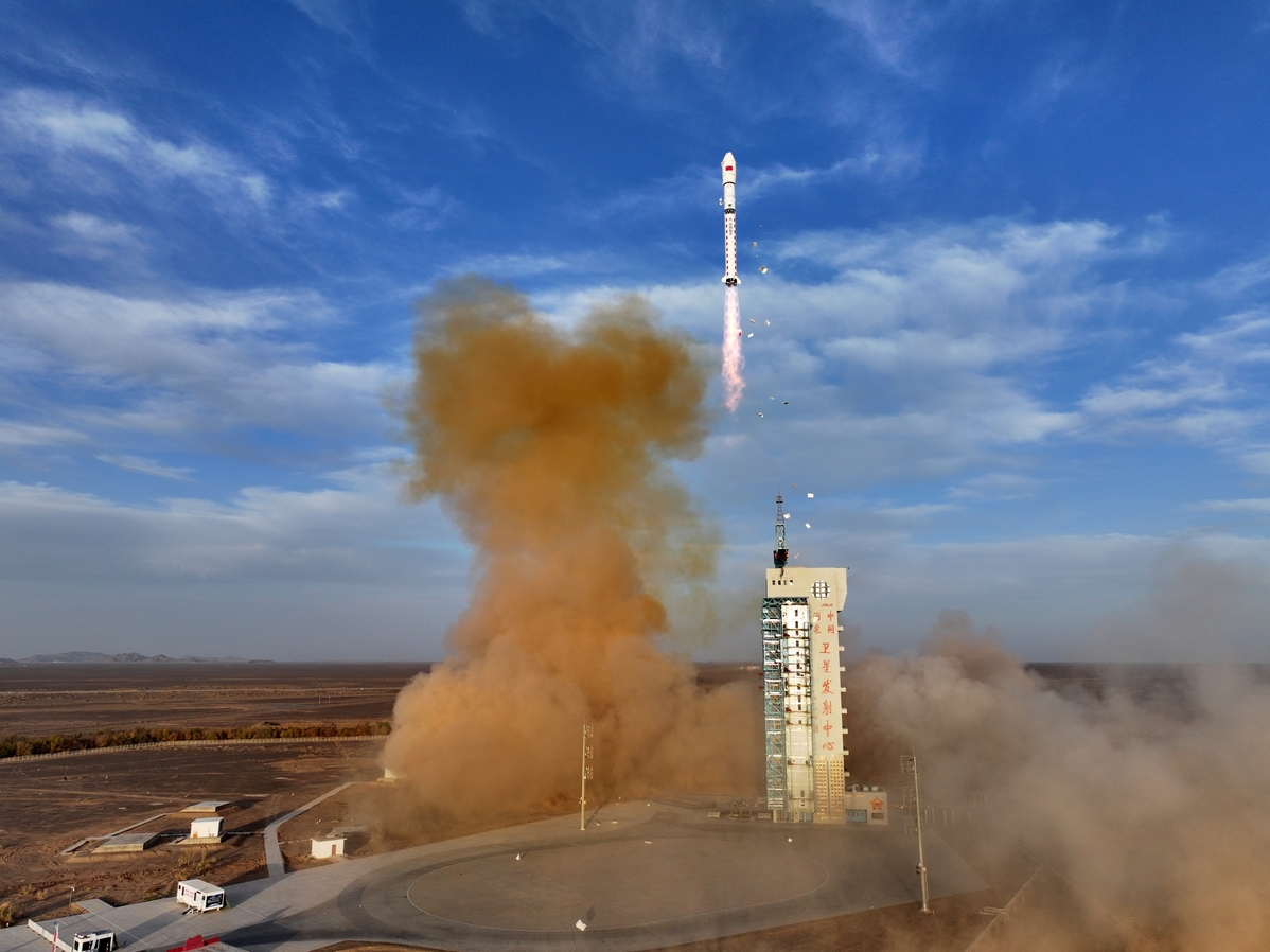 A Long March-2D carrier rocket carrying the Shiyan 31 test satellite blasts off from the Jiuquan Satellite Launch Center in Northwest China on Oct 13. [Photo by Wang Jiangbo/chinadaily.com.cn]