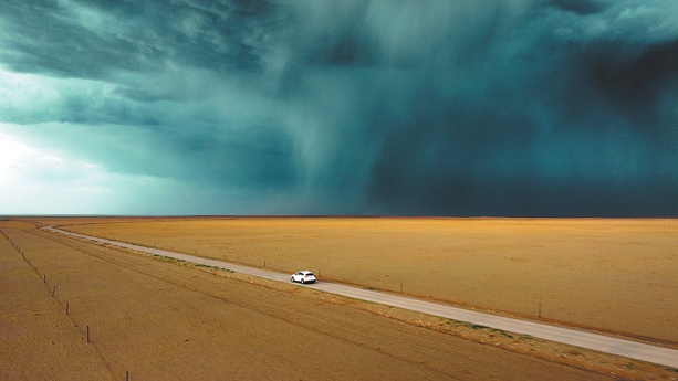 A scene shows a car driven by Su Dike, the film's director, and his team to chase a storm. [Photo provided to China Daily]