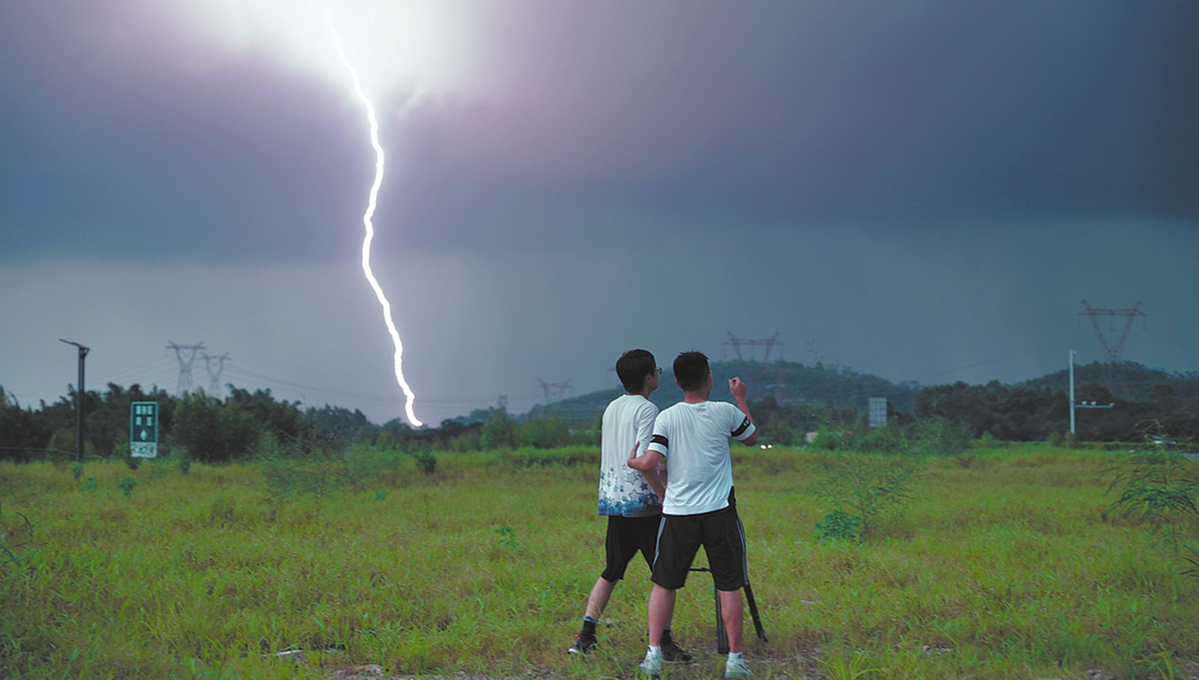 Su Dike (L) and Wang Lucheng direct the lens toward an approaching thunderstorm. [Photo provided to China Daily]