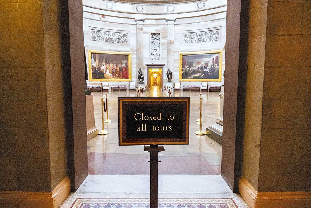 The "Closed to all tours" signage is displayed near the rotunda of the US Capitol in Washington on Monday amid federal government shutdown. ANNA ROSE LAYDEN VIA GETTY IMAGES