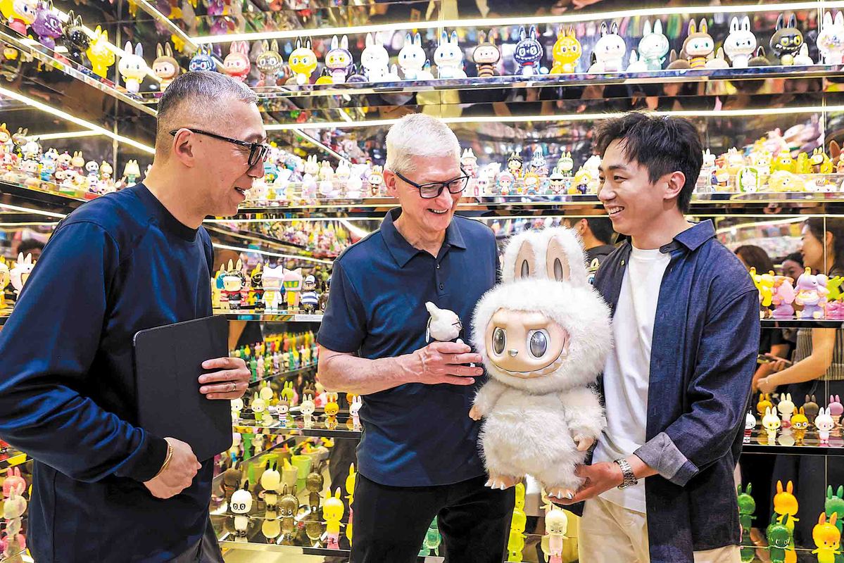 During his visit on Monday, Cook toured the "The Monsters" exhibition in Shanghai, met Pop Mart founder Wang Ning and artist Kasing Lung, and was gifted a custom Labubu figurine — a version of the brand's best-known character — clutching an iPhone. Videos and photos of Cook's meeting quickly went viral on social media, sending Pop Mart intraday shares up as much as 6 percent to HK$276.8 ($35.6) before paring gains to close at HK$263, with trading volume exceeding HK$4.4 billion.