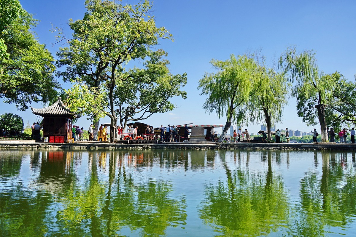 Tourists visit the Nanhu Lake scenic area in Jiaxing, East China's Zhejiang province, Oct 10, 2025. [Photo/Xinhua]