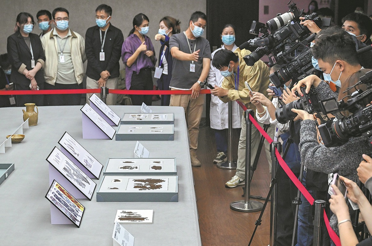 Media workers photograph the Zidanku Silk Manuscripts during a handover ceremony at the Hunan Museum in Changsha, Hunan province, on Oct 13, 2025. GUO LILIANG/FOR CHINA DAILY
