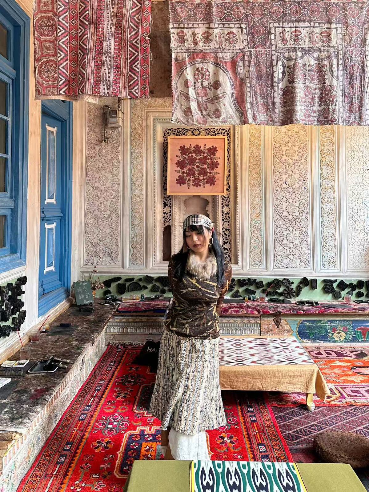 After studying and working outside Xinjiang for several years, He returned in 2024 to establish her own design studio in the ancient city of Kashgar.