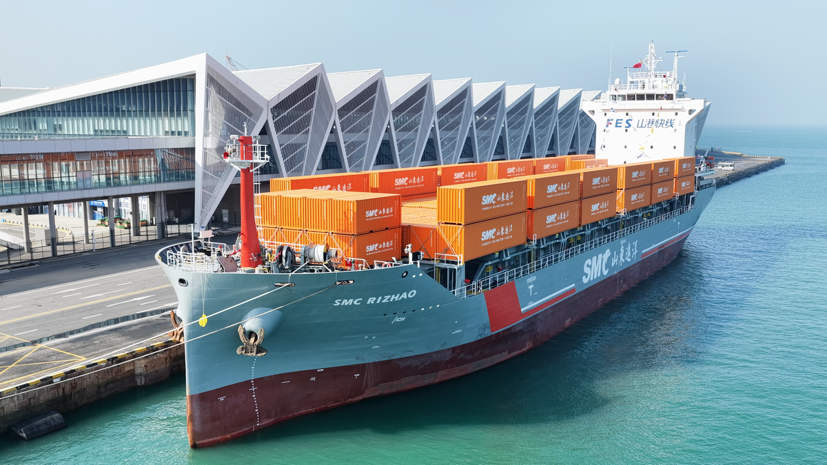 The vessel SMC Rizhao, loaded with light industrial goods, textiles, and other cargo, departed from Qingdao Port on Thursday, signaling the launch of a container service route that links Qingdao in Shandong province and Jeju in South Korea.