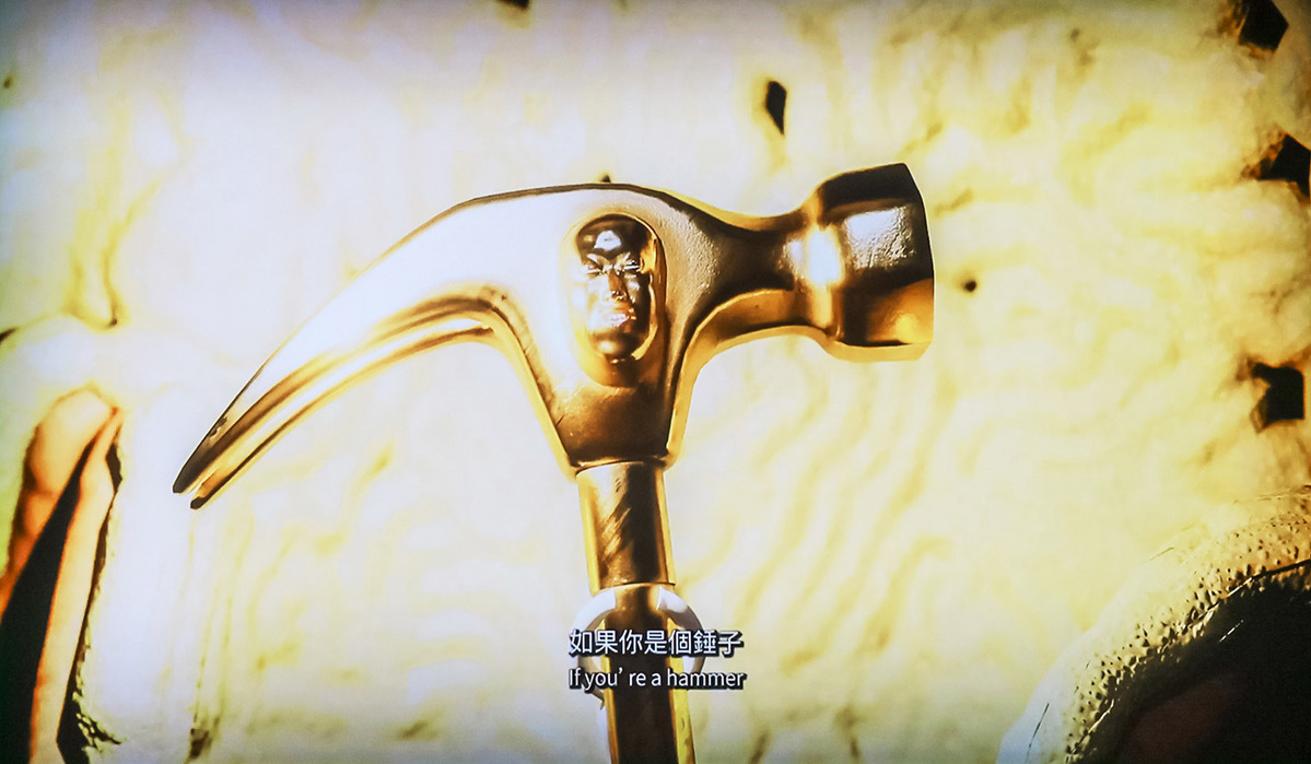 Framed like a karaoke-style video lecture, Wong Kit-yi's Robot Take Me Home (2023) imagines an automated future where human hands have lost their purpose. The piece invites viewers to wonder about certain core elements of the human experience that we stand to lose as a result of technological advancement.