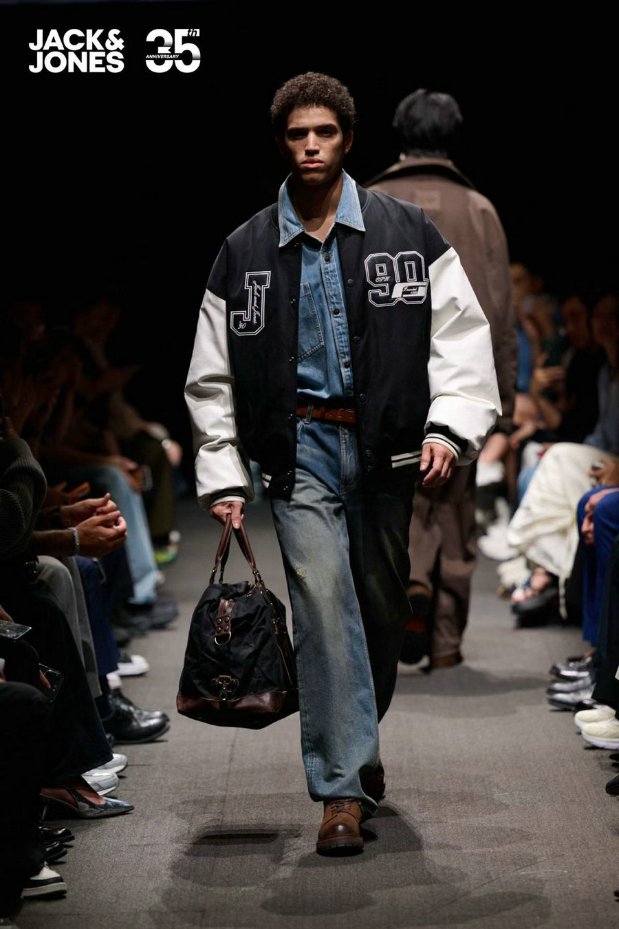 A model presents creations by Jack & Jones during its 35th Anniversary Fashion Show in Shanghai on Oct 15, 2025. [Photo provided to chinadaily.com.cn]